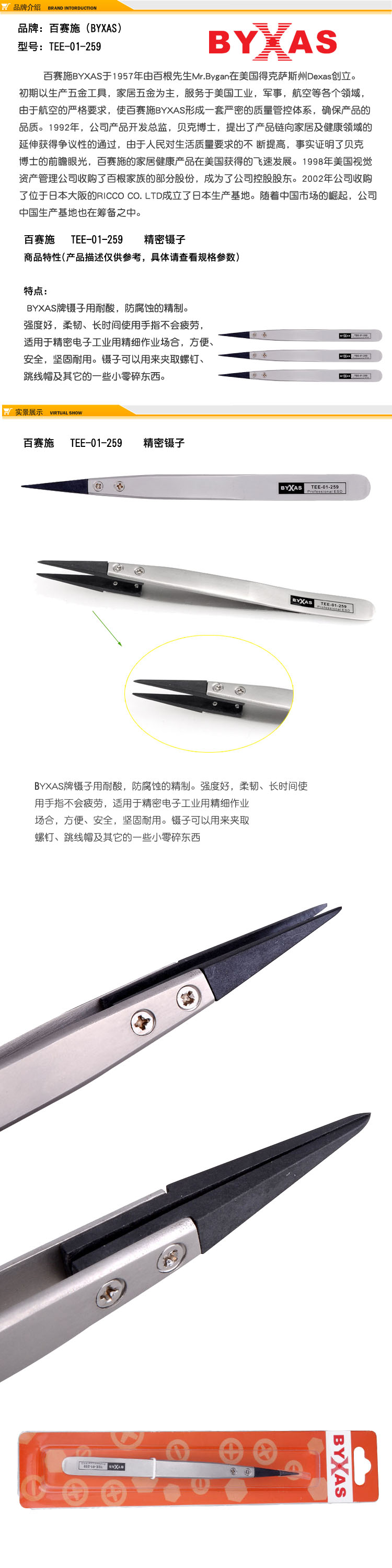 百賽施不銹鋼防靜電優質精密鑷子TEE-01-259