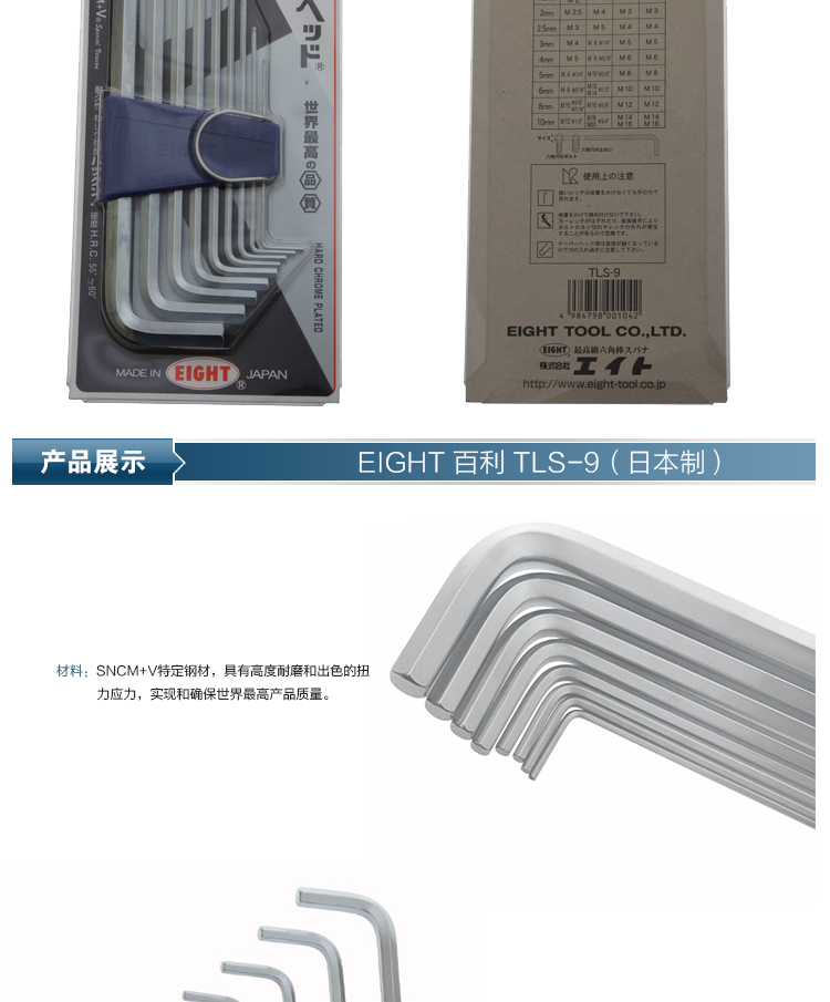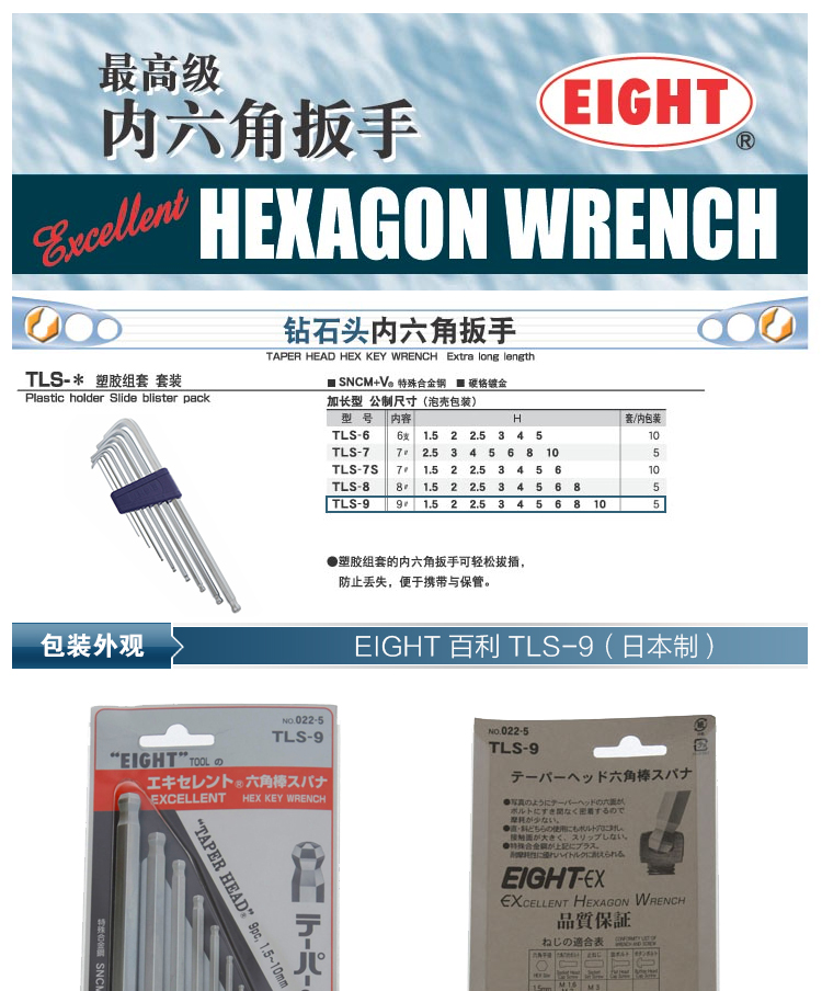 EIGHT 百利鉆石頭內六角扳手 TLS-9