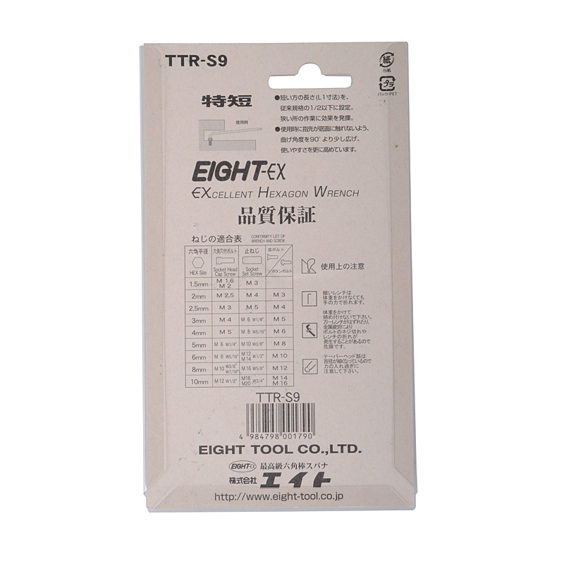 EIGHT 百利短尾鉆石頭內六角扳手 TTR-S9