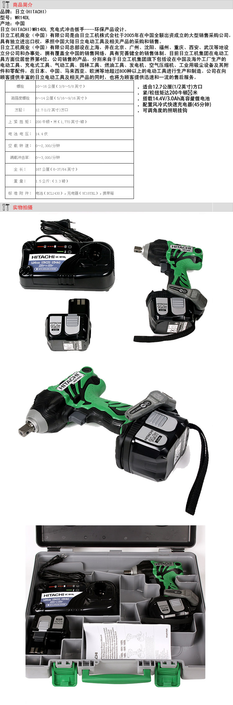 HITACHI日立充電式沖擊扳手WR14DL