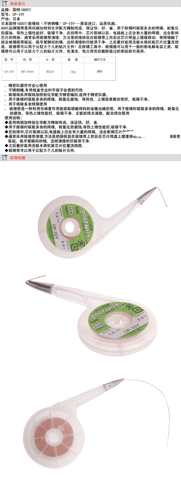 GOOT日本吉歐歐替 吸錫線(不銹鋼嘴)CP-15Y