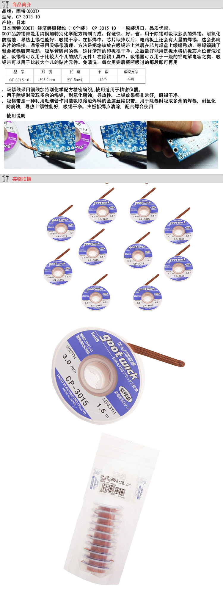 GOOT日本吉歐歐替 經濟吸錫線(卷裝)CP-3015-10