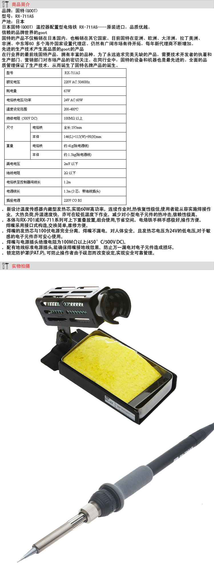 GOOT日本吉歐歐替 溫控器配置型電烙鐵 RX-711AS