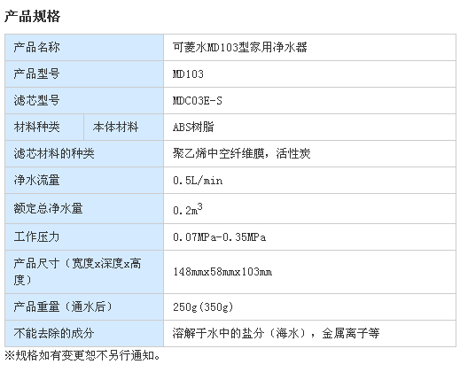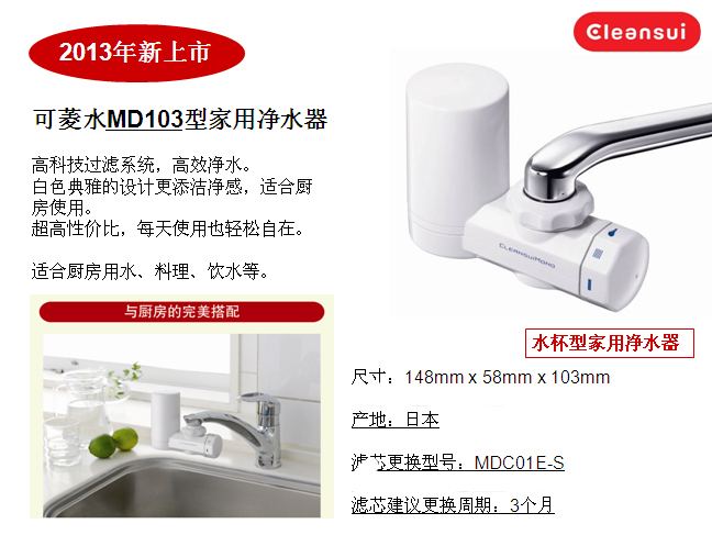 日本原裝進(jìn)口可菱水(Cleansui)家用凈水器 MD103