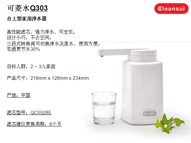 日本原裝進口可菱水(Cleansui)家用凈水器 Q303