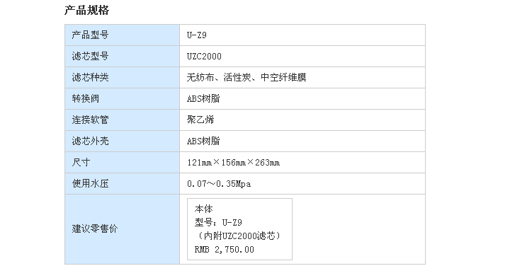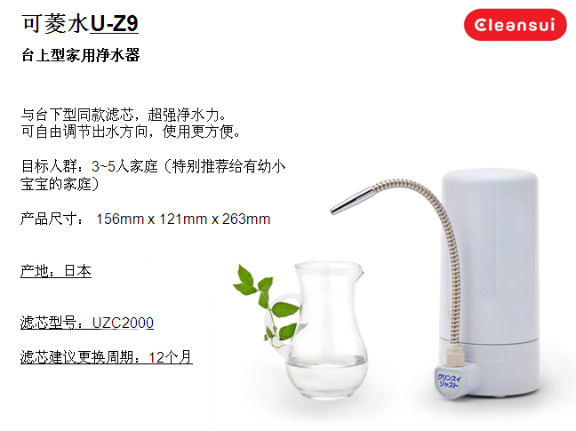 日本原裝進口可菱水(Cleansui)家用凈水器U-Z9