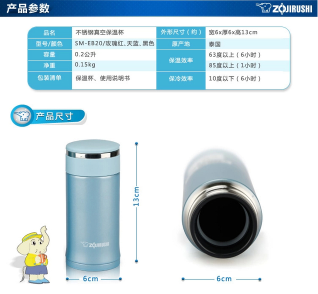日本象印(ZOJIRUSHI)保溫杯SM-EB20