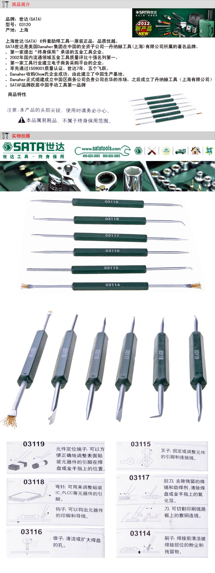 SATA世達6件套助焊工具03120