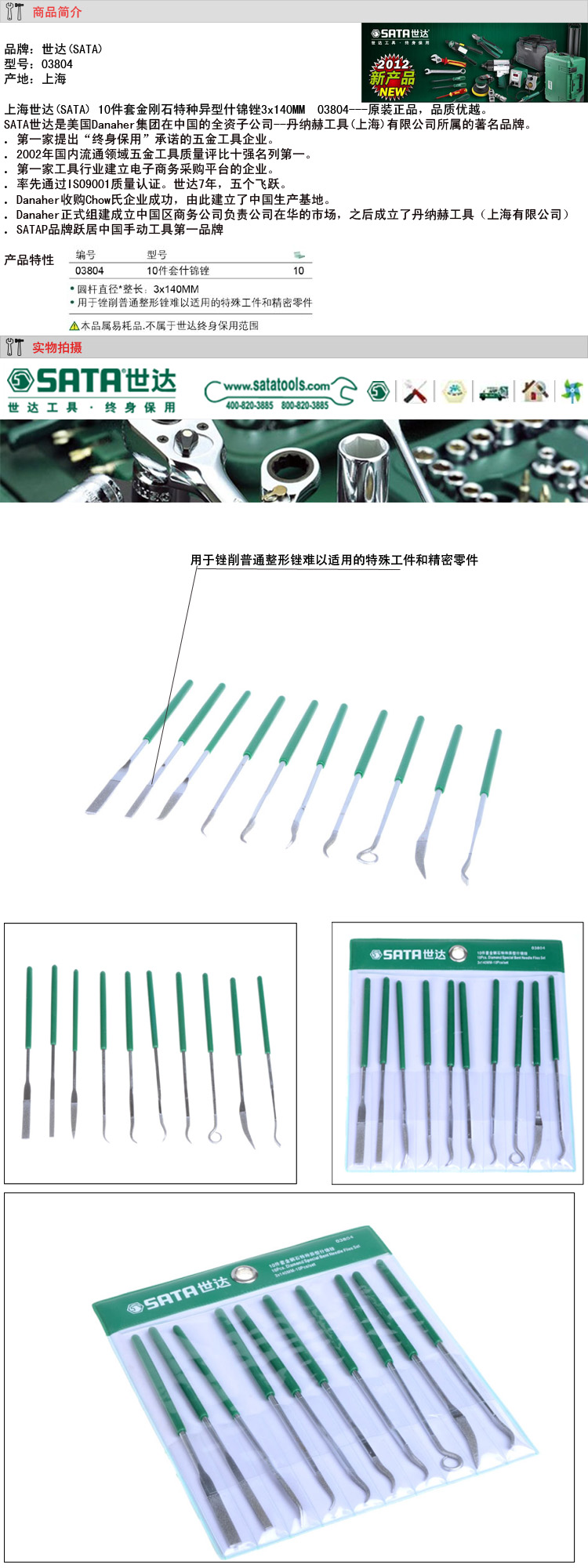 SATA世達10件套金剛石特別異型什錦銼3140MM 03804