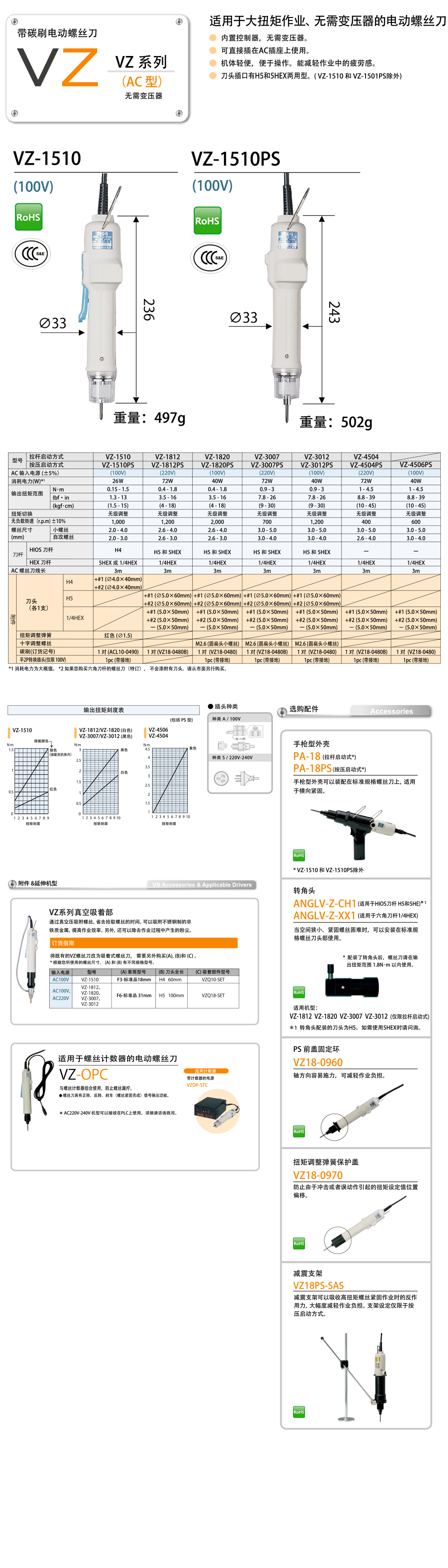 HIOS 無碳刷電動螺絲刀VZ-1510/VZ-1510PS