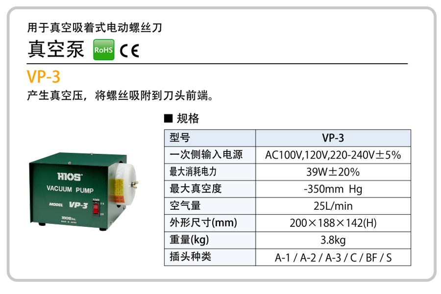 HIOS 用于真空吸著式電動(dòng)螺絲刀真空泵VP-3