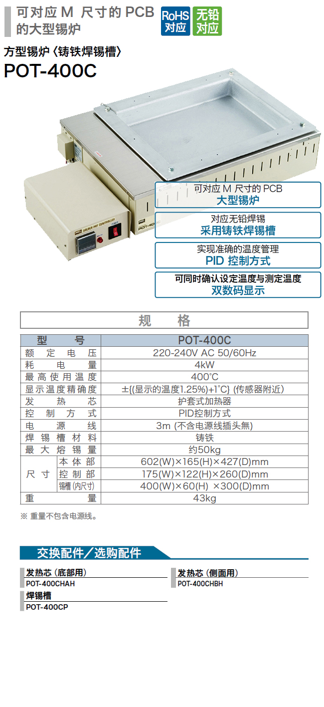 GOOT 方形錫爐<鑄鐵焊錫槽> POT-400C