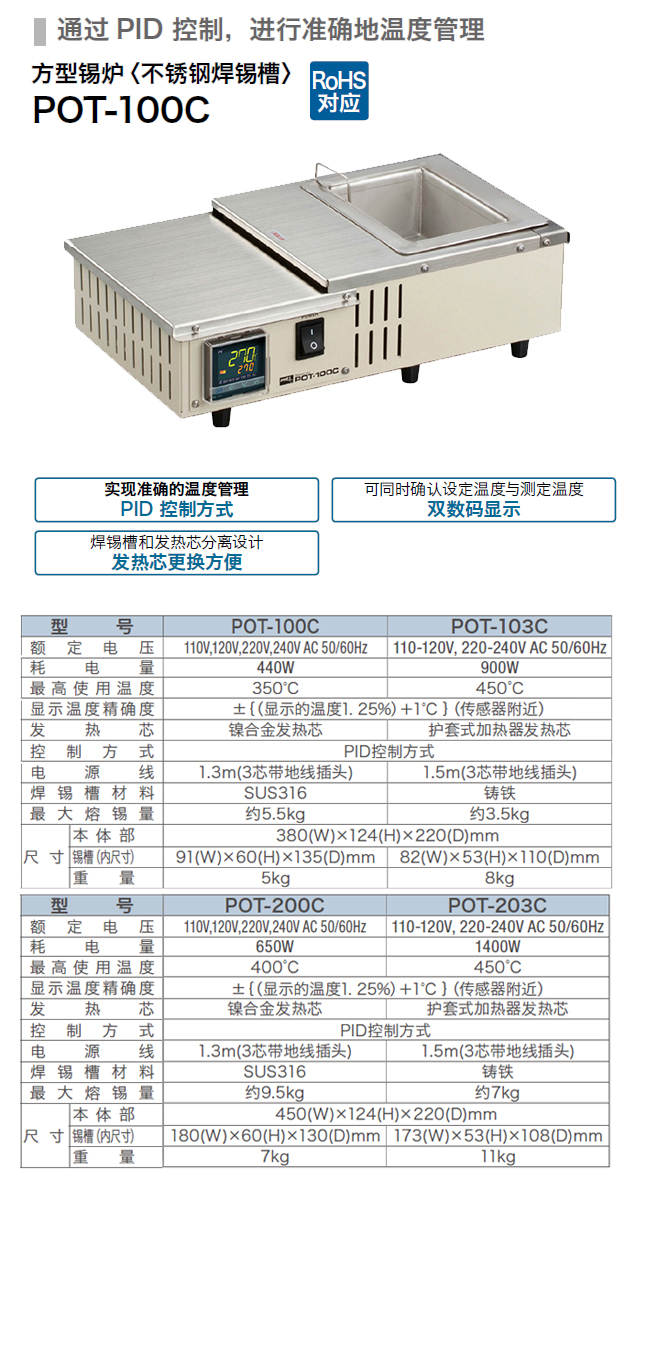 GOOT 方形錫爐<不銹鋼焊錫槽> POT-100C