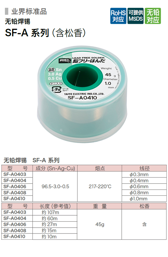 GOOT 無鉛焊錫 SF-A 系列(含松香)