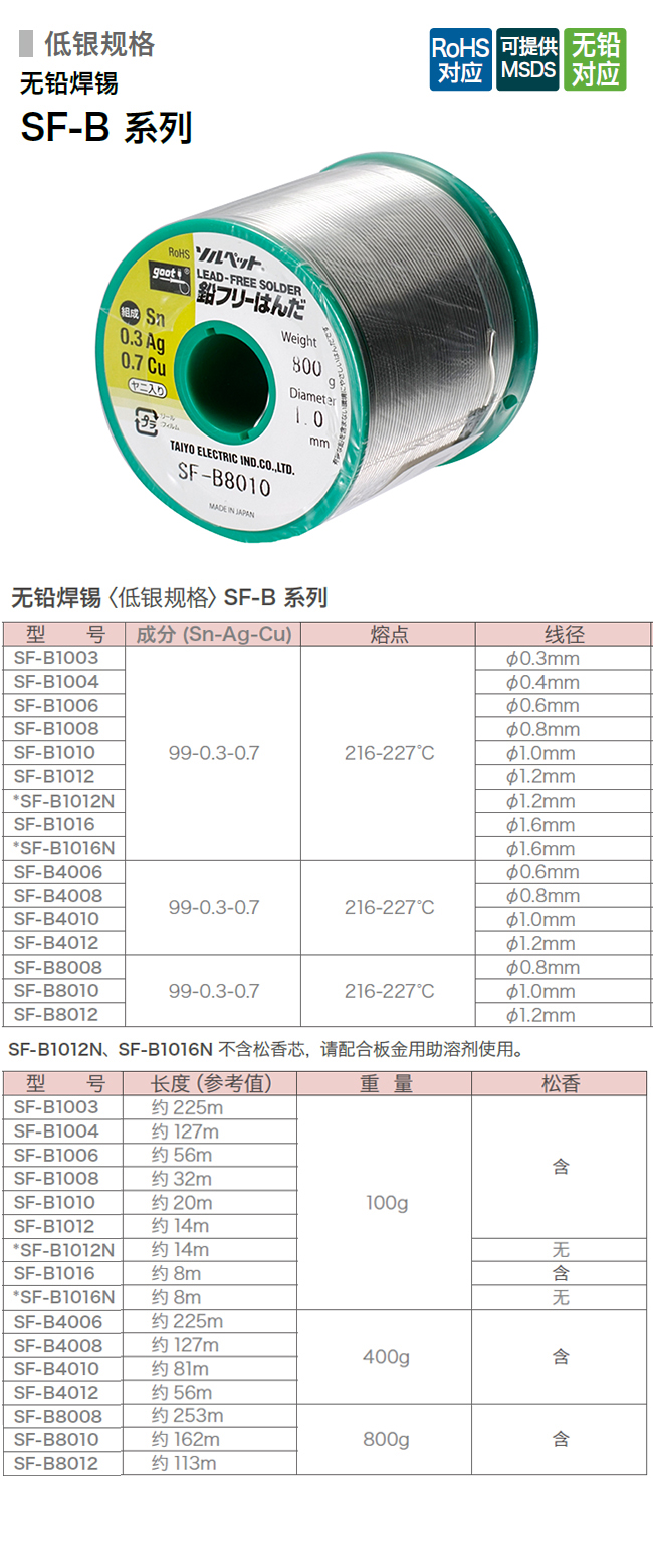 GOOT 無鉛焊錫 SF-B80 系列 (含松香)