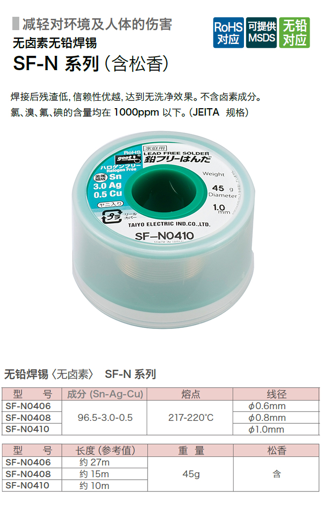 GOOT 無鹵素?zé)o鉛焊錫 SF-N 系列
