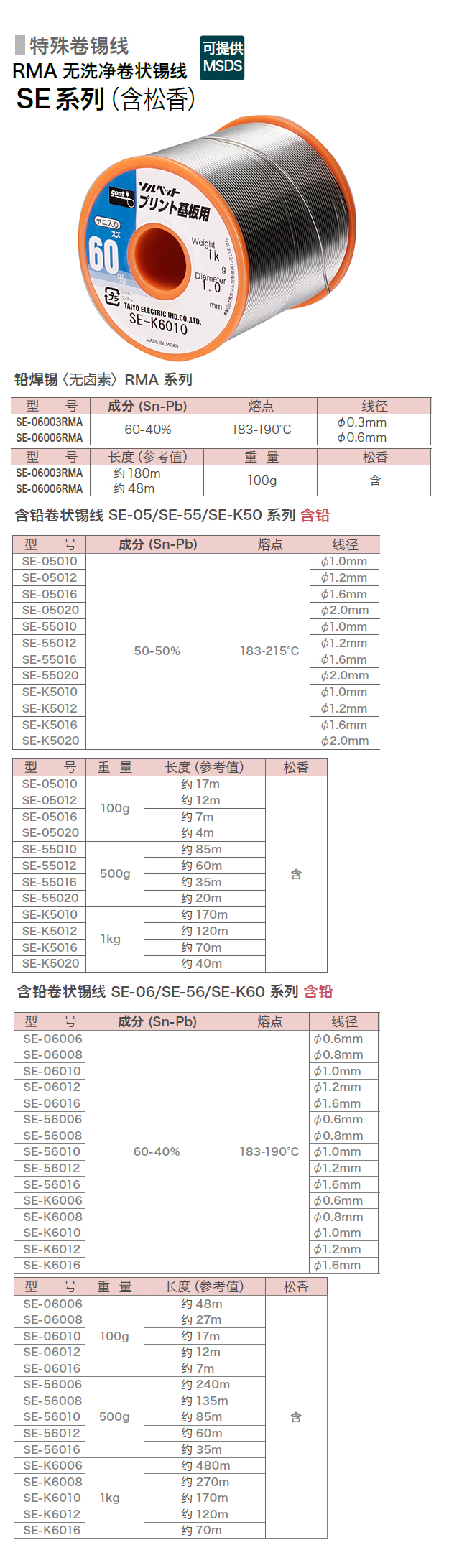 GOOT 特殊卷錫線 SE-K6 系列(含松香)(含鉛)