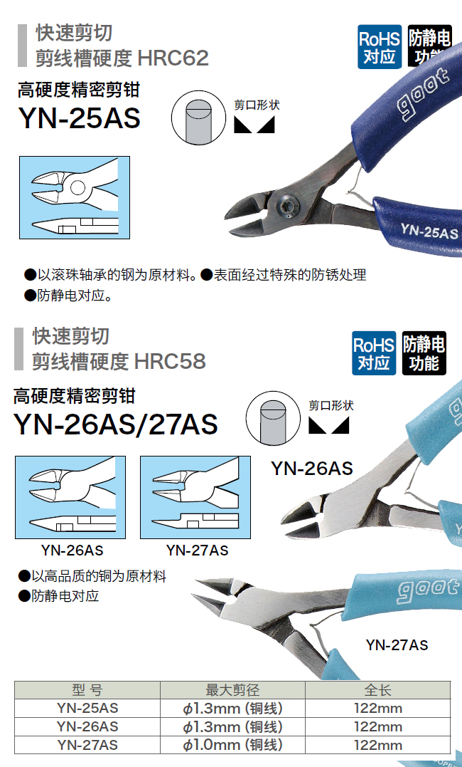 GOOT 高硬度精密剪鉗 YN-27AS