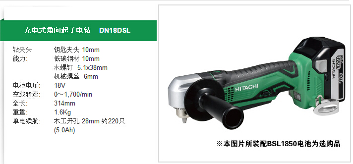 HITACHI日立 充電式角向起子電鉆 DN18DSL