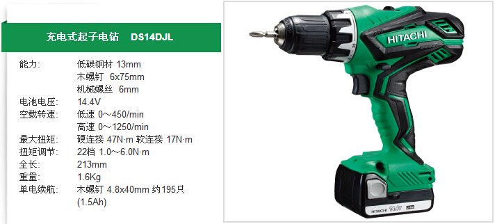 HITACHI日立 充電式起子電鉆 DS14DJL