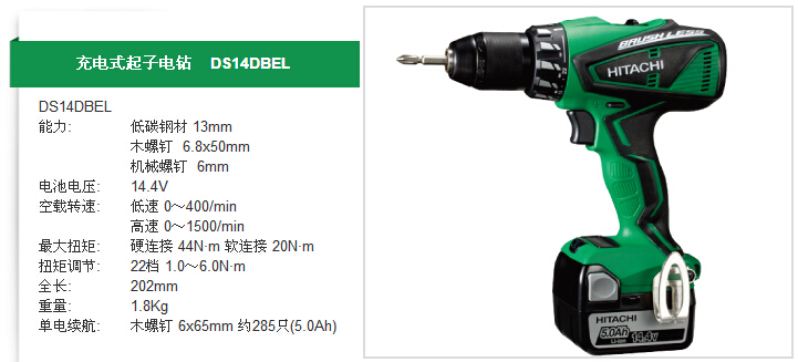 HITACHI 日立 充電式起子電鉆 DS14DBEL