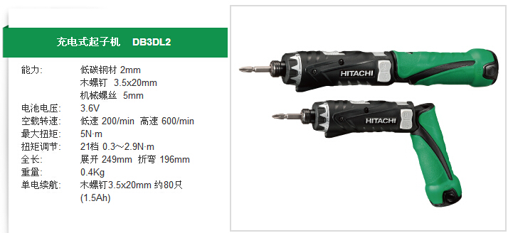 HITACHI日立 充電式起子機(jī) DB3DL2