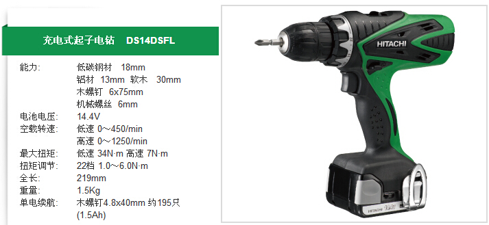 HITACHI日立 充電式起子電鉆 DS14DSFL