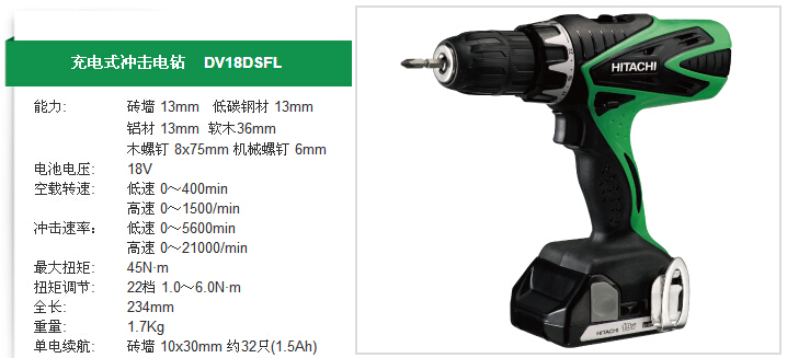 HITACHI日立 充電式沖擊電鉆 DV18DSFL