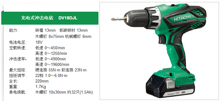 HITACHI日立 充電式?jīng)_擊電鉆 DV18DJL