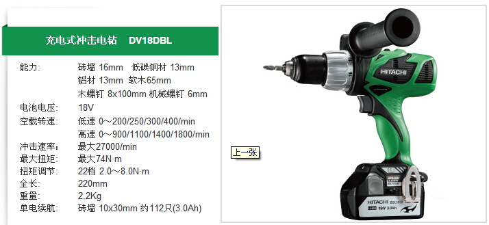 HITACHI日立 充電式沖擊電鉆 DV18DBL