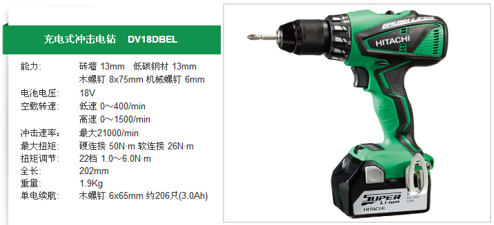 HITACHI日立 充電式沖擊電鉆 DV18DBEL