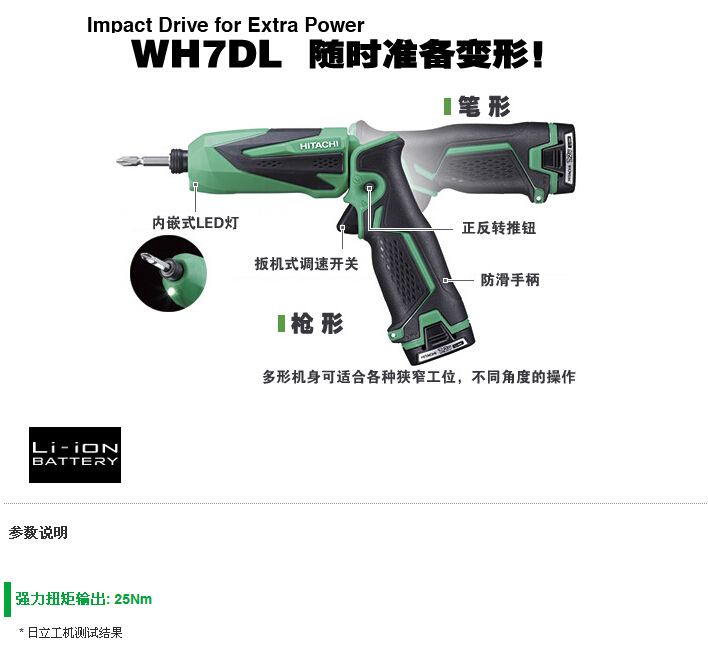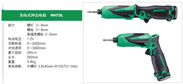 HITACHI日立 充電式沖擊電鉆 WH7DL