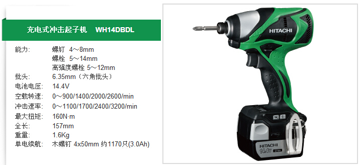 HITACHI日立 充電式沖擊起子機 WH14DBDL