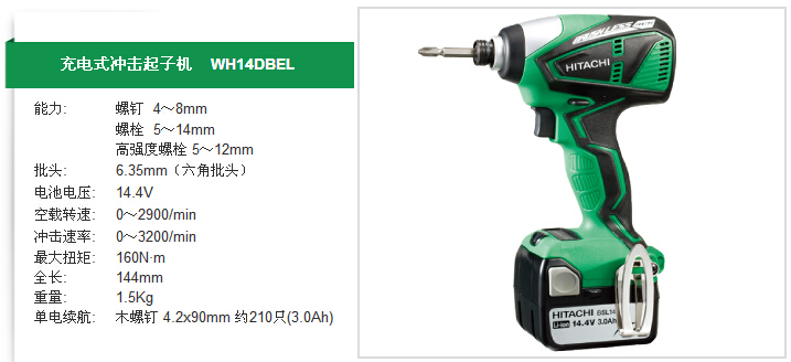 HITACHI日立 充電式?jīng)_擊起子機(jī) WH14DBEL