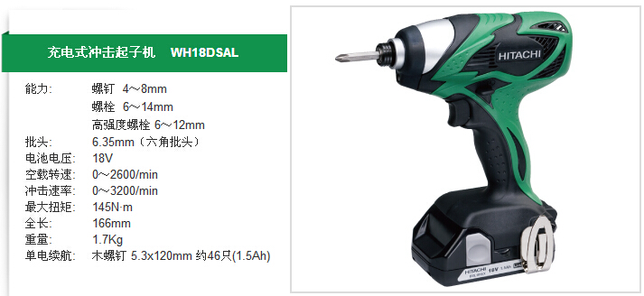 HITACHI日立 充電式沖擊起子機 WH18DSAL