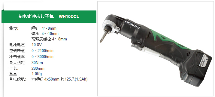 HITACHI日立 充電式沖擊起子機 WH10DCL