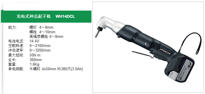 HITACHI日立 充電式沖擊起子機 WH14DCL