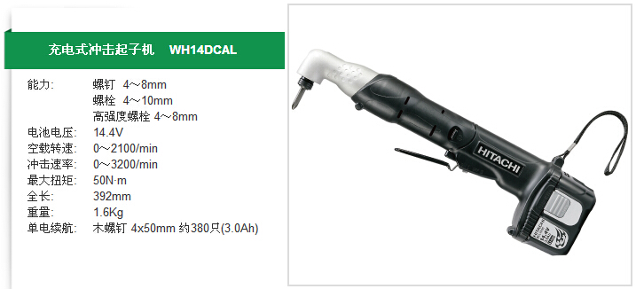 HITACHI日立 充電式沖擊起子機 WH14DCAL