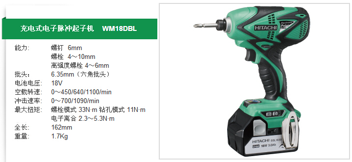 HITACHI日立 充電式電子脈沖起子機 WM18DBL