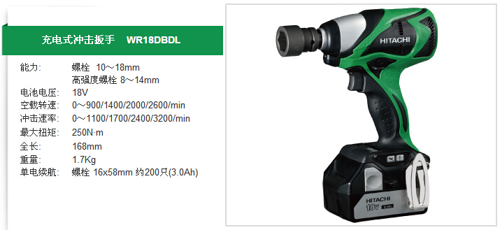 HITACHI日立 充電式沖擊扳手 WR18DBDL