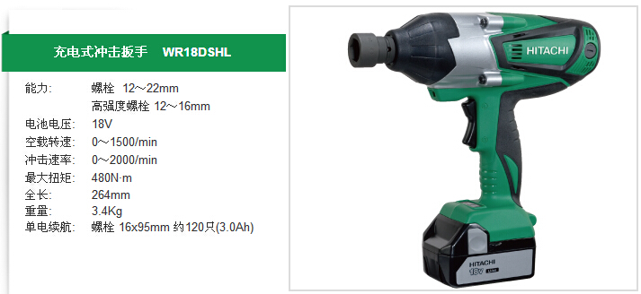 HITACHI日立 充電式?jīng)_擊扳手 WR18DSHL