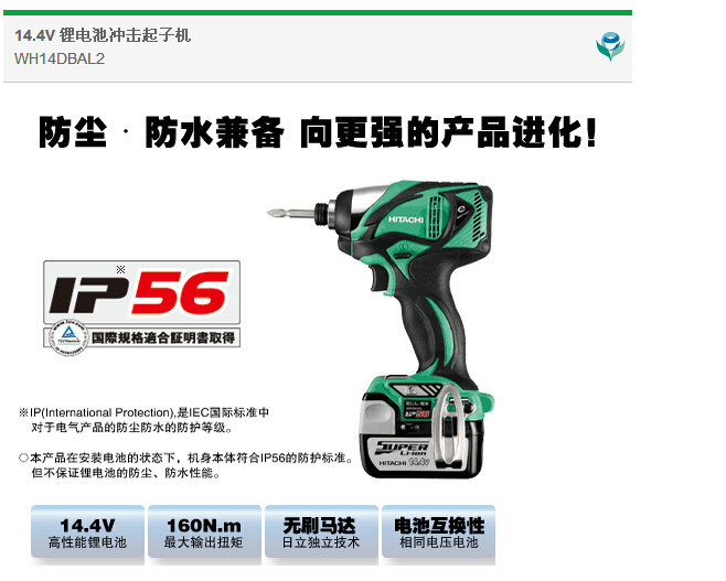 HITACHI日立 防塵防水沖擊起子 WH14DBAL2
