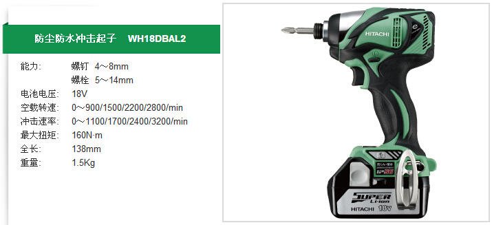 HITACHI日立 防塵防水沖擊起子 WH18DBAL2