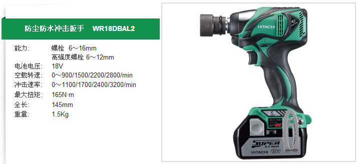 HITACHI日立 防塵防水沖擊扳手 WR18DBAL2